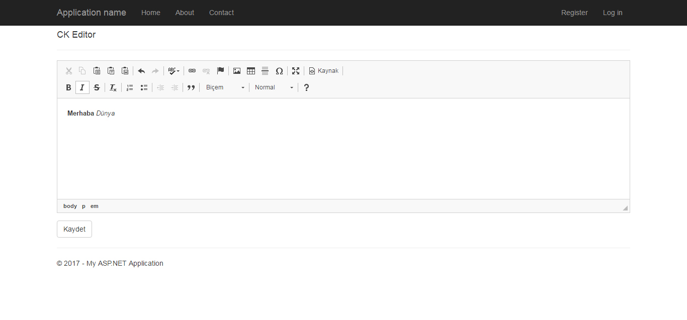 Bu kısımda CKEditor kurulumdaki adımları tekrar gerçekleştirmemiz ve projeye dahil etmemiz gerekmekte. CKEditor kurulumu için CKEditör yazımıza göz atabilirsiniz.