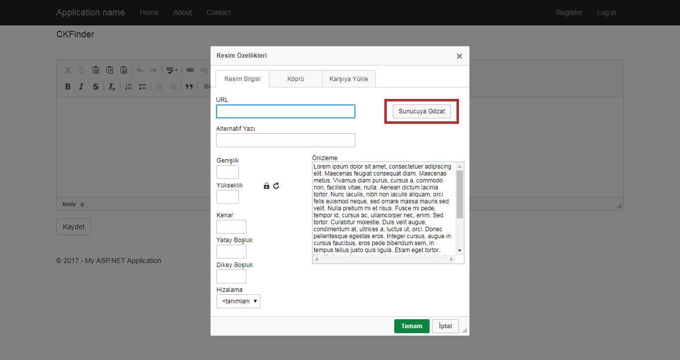 Tüm işlemleri doğru bir şekilde gerçekleştirdiğimizde CKFinder’ın sorunsuz olarak çalıştığını göreceksiniz.